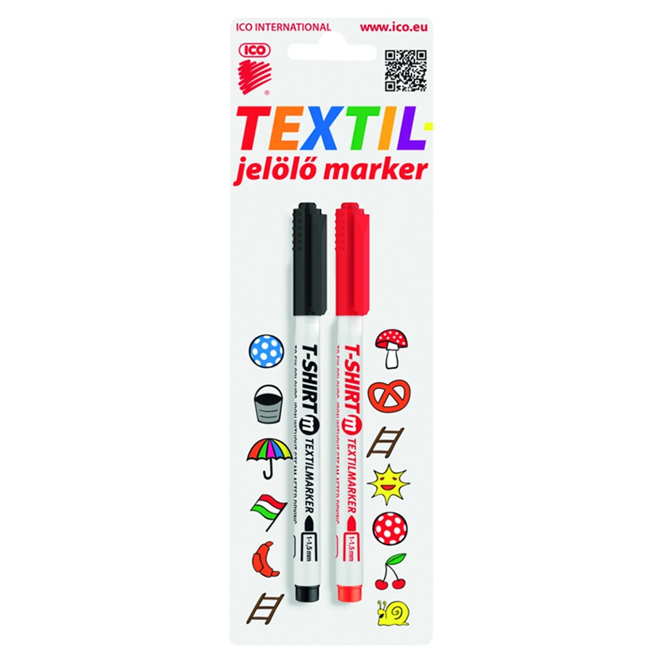 ICO T-SHIRT fekete és piros textil jelölő marker 2 db