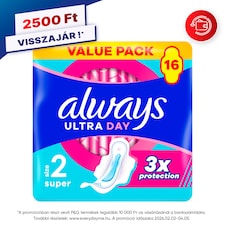 • Always Ultra Day Super Egészségügyi Betét (2-es Méret) Szárnyas Betét x 16]